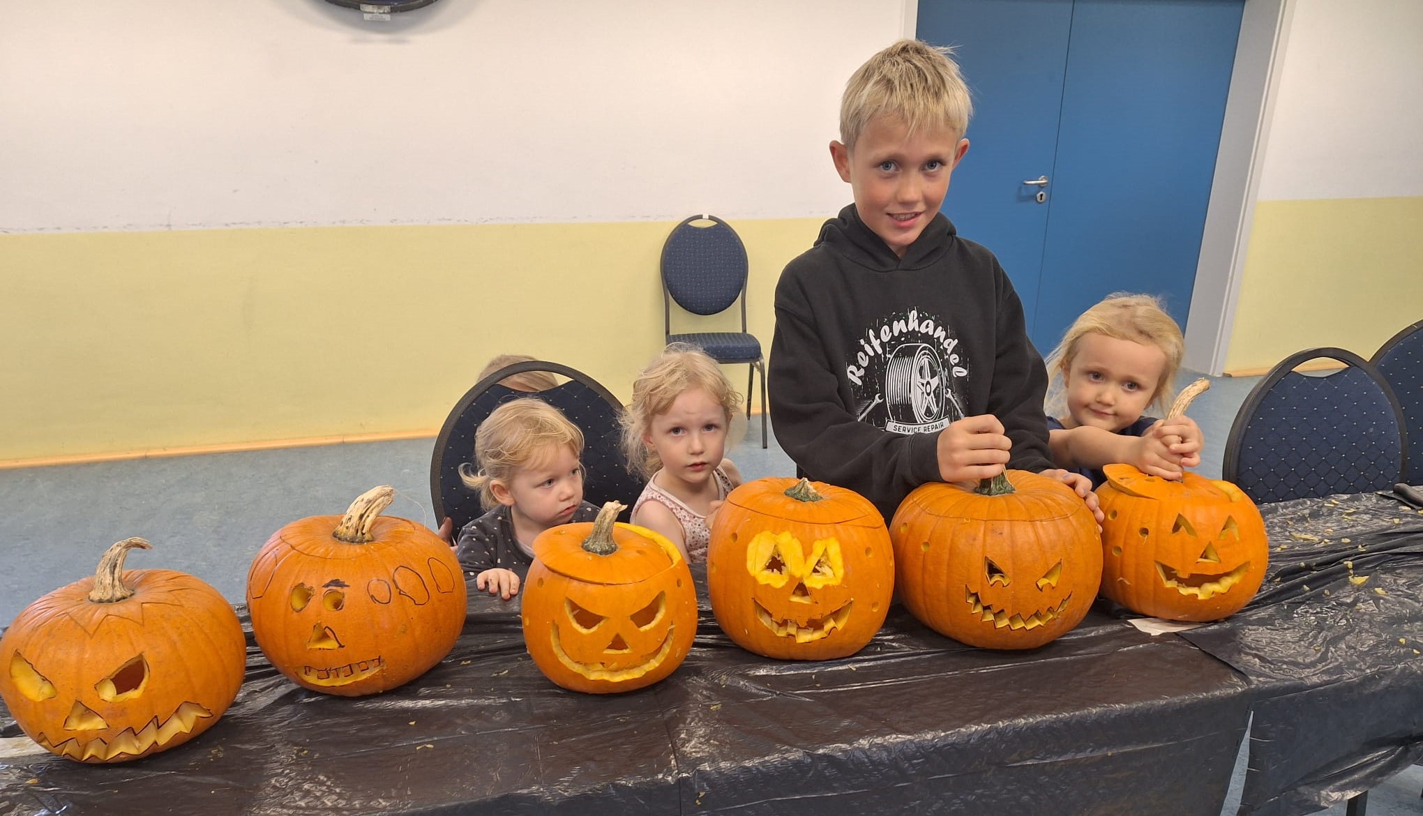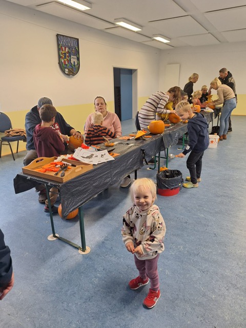Das alljährliche Kürbisschnitzen für die Kinder war auch in diesem Jahr gut besucht. 16 Kürbisse haben tolle Gesichter bekommen. Am Eingang zum Dorfgemeinschaftshaus stehen nun 2 Kürbisse. Cindy Bartz hat die Vorbereitungen organisiert und die Fotos von den Kürbissen mit den begeisterten Kindern gemacht.