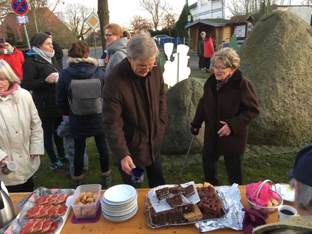 Einen Tag vor dem ersten Advent gingen in Sarkwitz die Weihnachtslichter an. Der Dorfvorstand hatte die Dorfschaft an der Basse-Eiche zum Kalenderpunsch eingeladen – und gleichzeitig wurden die Lichterbaumfiguren aufgestellt. Zehn sind es nun an der Zahl. Auch ein neuer Waldbewohner ist dabei.