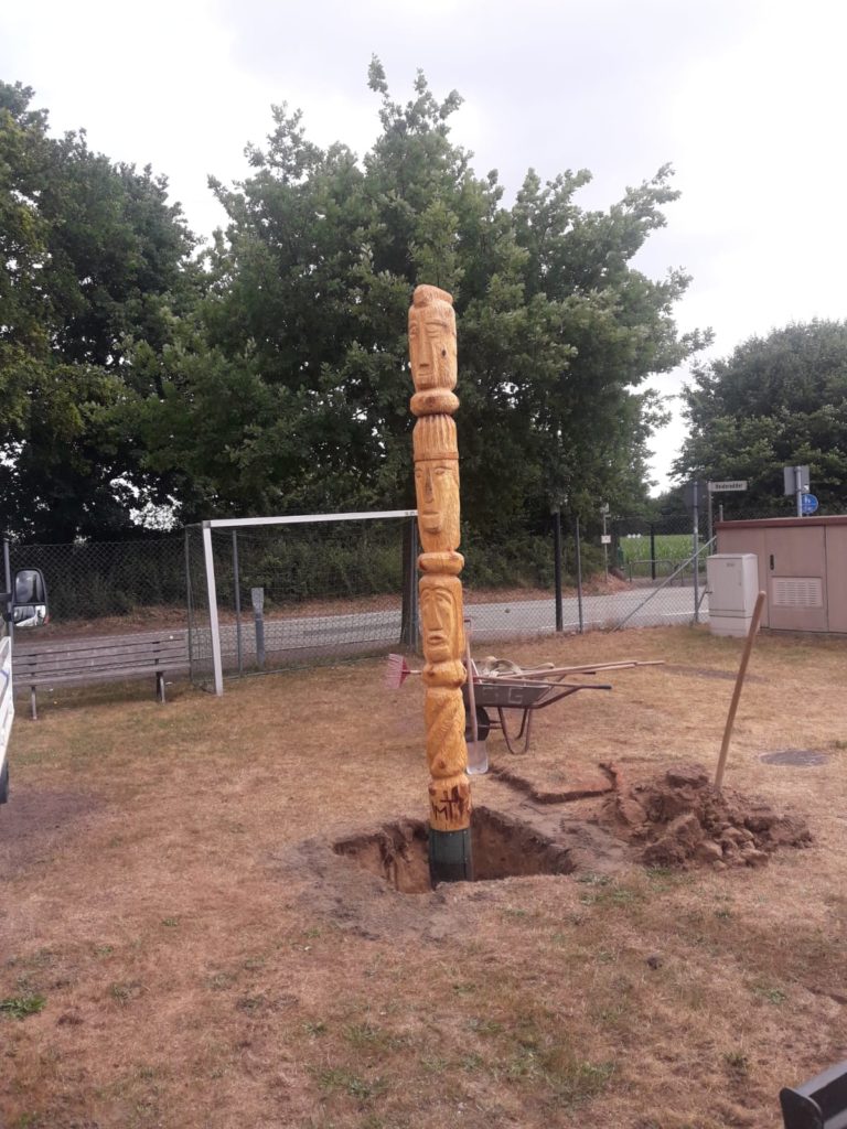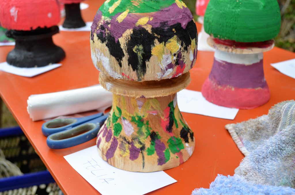 Besonders beliebt ist an diesem Nachmittag die Malecke des Sarkwitzes Martin Töpper. Er hatte eigens für die Kinder kleine Pilze gedrechselt, die der Nachwuchs eifrig mit Farbe versieht. Auch den Marterphal, der einen dauerhaften Platz am Spielplatz gefunden hat, ist von Martin Töpper gefertigt worden. Der Sarkwitzer Kai Neumann, Förster in Lübeck, hatte den Baumstamm gespendet. „Es ist gut, dass der Marterphal nicht angemalt worden ist“, sagt Marion Urban. „So wirkt er viel besser.“ (vb)