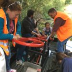 Die drei Schienenfahrzeuge mussten mit Muskelkraft über knapp zehn Kilometer befördert werden. Mit vereinten Kräften schafften es schließlich alle in 50 Minuten zum Bogenschießen nach Hollenbek – und erstaunliche zehn Minuten schneller zurück nach Schmilau. Vermutlich trieb der Hunger die Teams zu sportlichen Höchstleistungen an, denn im Bahnhof war bereits der Grill für die Ausflügler angeheizt.