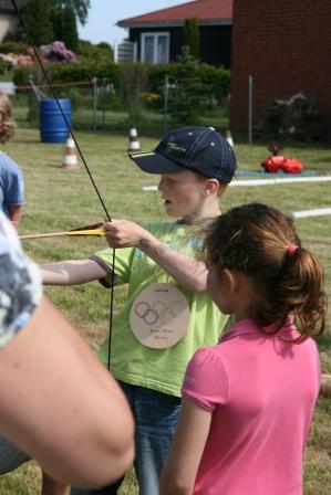 Und nun gas es auch kein Halten mehr. Die Kinder stürmten IHR Kinderfest. Zunächst holte sich jedes Kind einen Anhänger mit seinem Namen ab. Darauf zu sehen waren die Olympischen Ringe. Sie standen für die verschiedenen Spielstationen, welche die Kinder absolvieren können. Wer alles geschafft hatte, dessen Ringe erstrahlten in den Olympischen Farben. Auf der Rückseite galt es Wurst, Getränke, Eis, Waffeln und Kuchen abzuarbeiten. zum Schluß gab es für jedes Kind ein schönes Geschenk mit nach Hause.